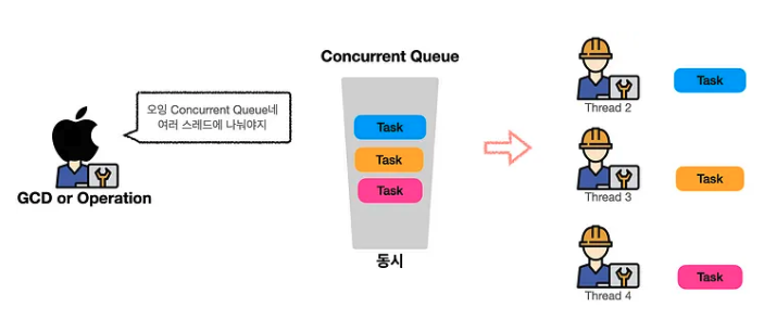 - 작업을 여러개의 스레드에 보냄