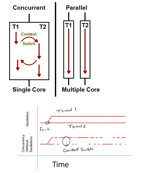 - 싱글 코어에서 멀티 스레드를 동작시키는 방식 / 하나의 코어가 번갈아가면서 작업을 수행