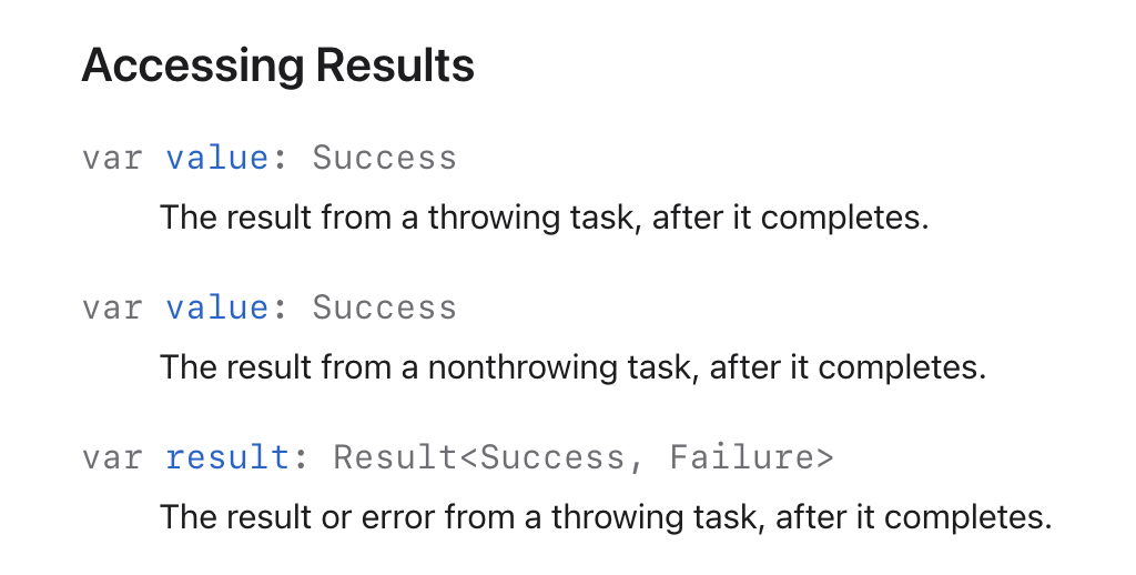 let task: Task<String, Never> = Task {
