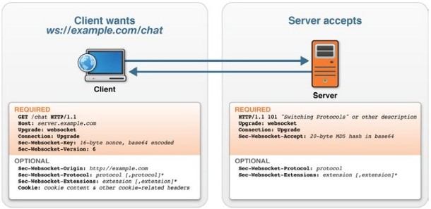 - 최초 접속시에만 http프로토콜 위에서 handshaking을 하기 때문에 http header를 사용한다.
