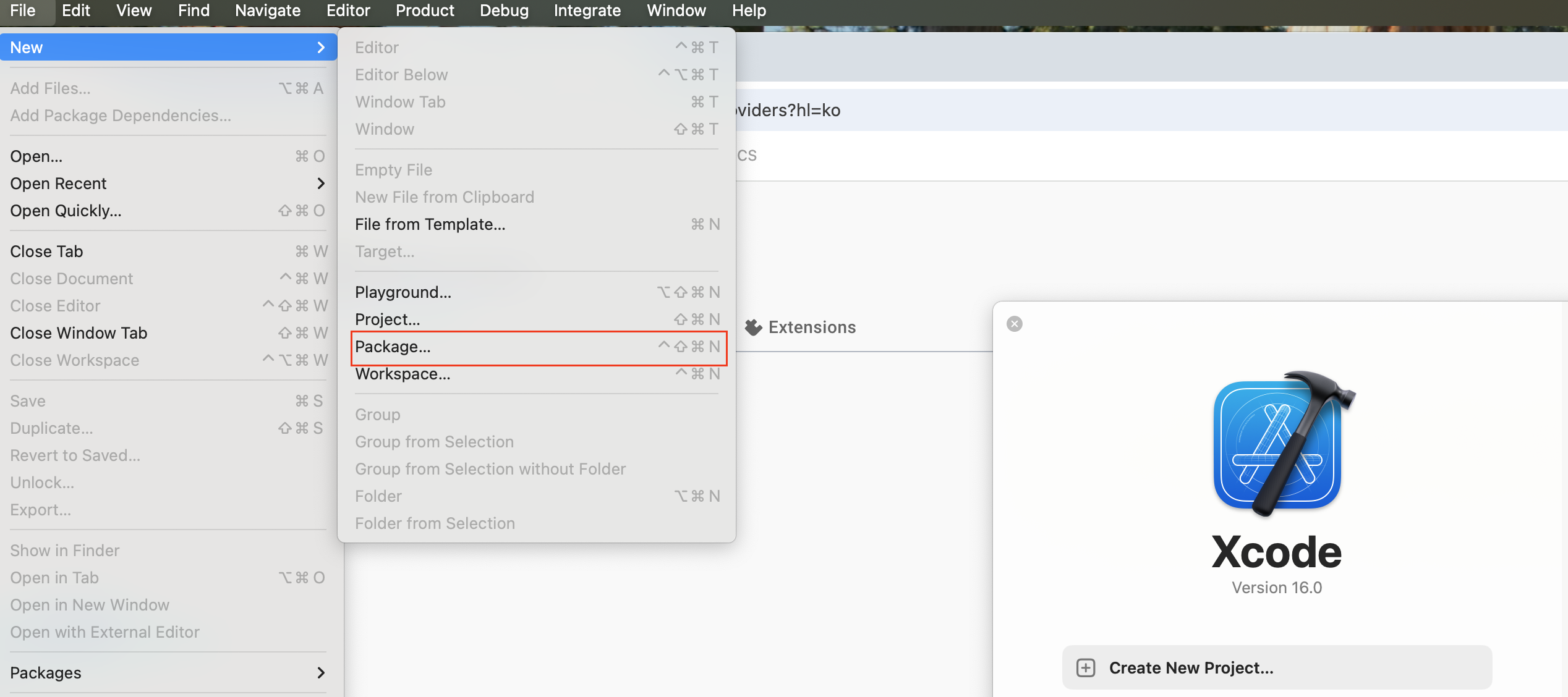 Xcode -> File -> Packag를 순서대로 누르자.