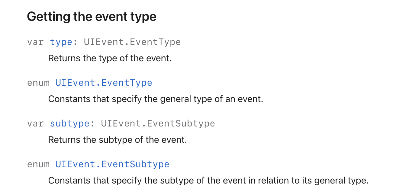 요약하자면 Event가 발생하면 바로 UIEvent 인스턴스가 생성되고 다음과 같은 정보를 알 수 있다.