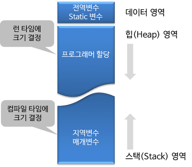 힙은 동적할당에 사용되는 메모리 영역이므로 동적할당의 특징이 힙의 특징을 대표한다고 할 수 있다.