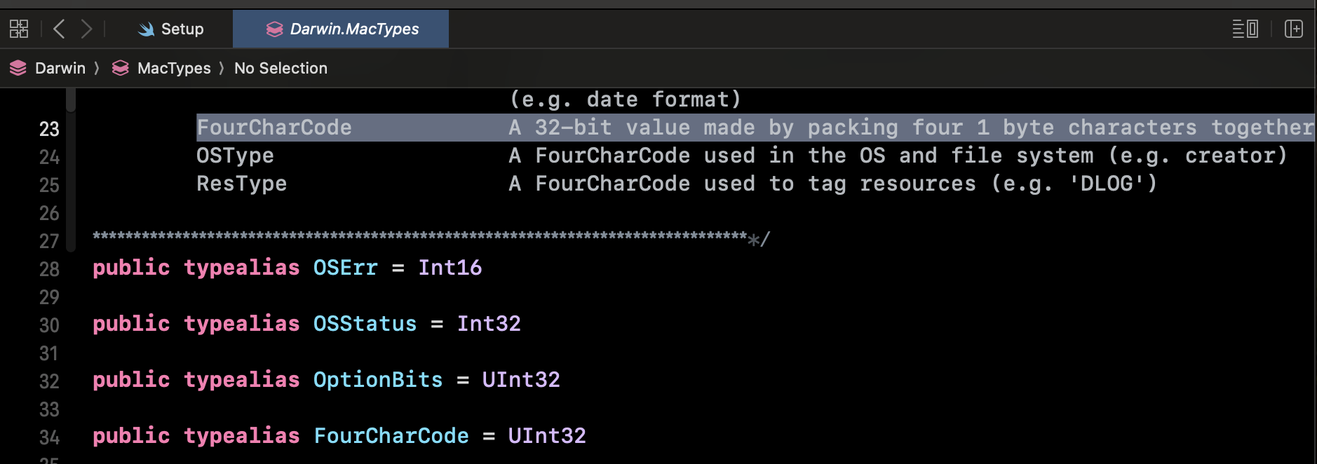 이렇게 FourCharCode를 typealias를 통해 쉽게 쓸 수 있다.