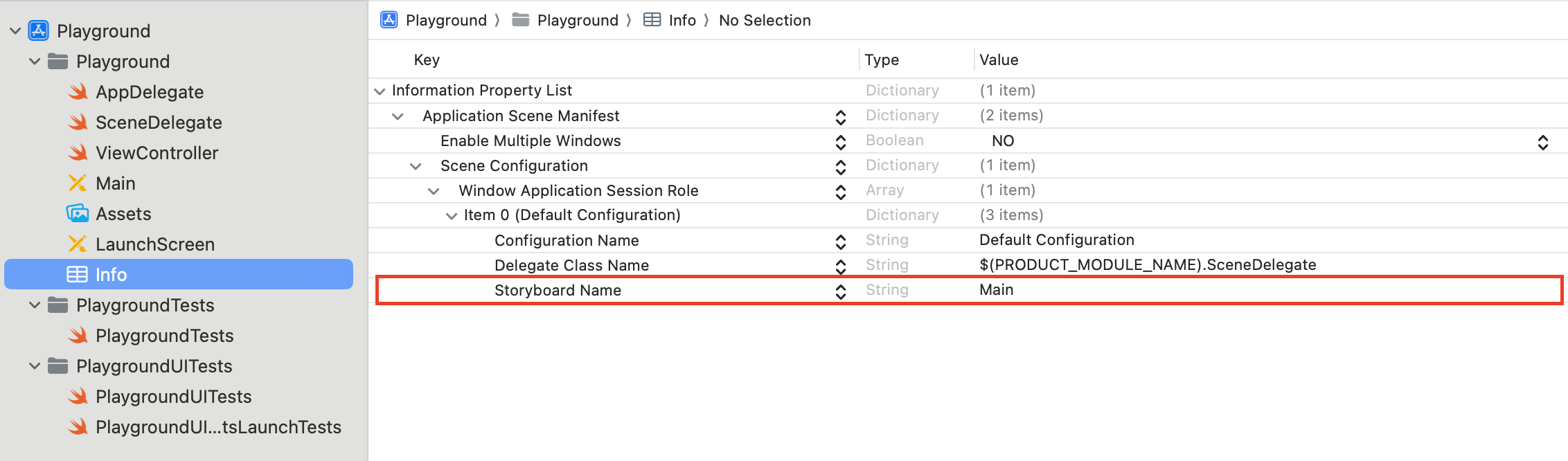 첫번 째는 info.plist에 있는 Scene Configuration에 있는 Storyboard Name을 제거한다.
