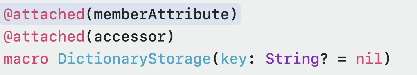 public macro accessor() = #externalMacro(module: "MyMacroMacros", type: "AttachedAccessorMacro")