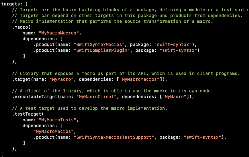public macro extensionmacro() = #externalMacro(module: "MyMacroMacros", type: "AttachedExtensionMacro")