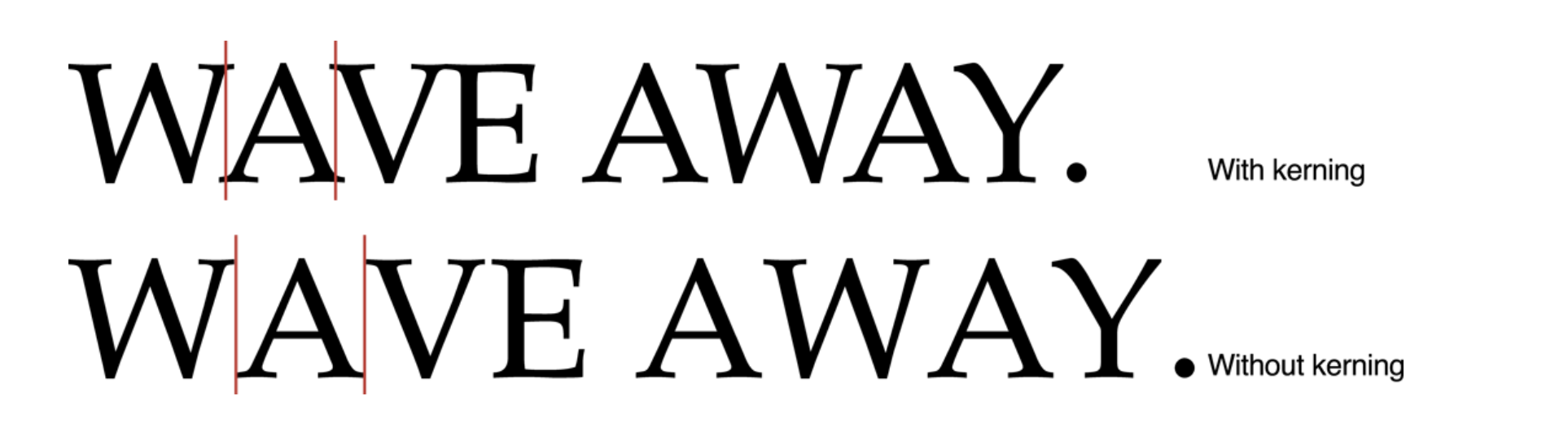 즉, Kerning은 어떤 글자 조합(W와 A 같은)이 Advance witdth만으로 어색할 때, 조절하는 사이 간격이다.