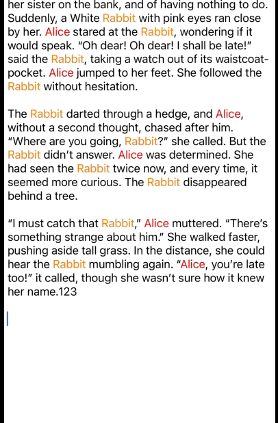 - 예를 들어 메시지 앱에서 사용자 ID를 강조해야 할 경우, 특정 패턴(예: @username)을 감지하고 해당 텍스트의 스타일을 즉시 변경