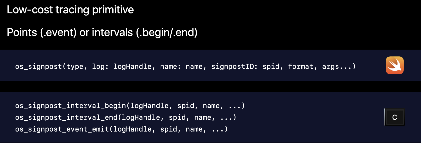 - os_signpost(Tracing)