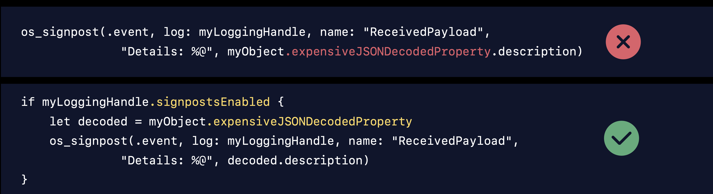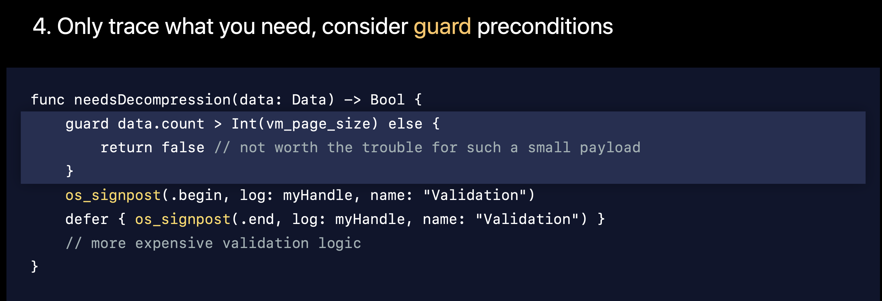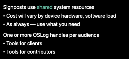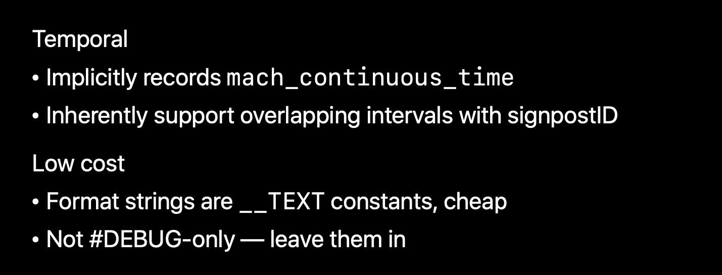 - 내장된 OSSignpost의 트랙을 혼잡하게 만들지 않음 (노이즈 최소화)