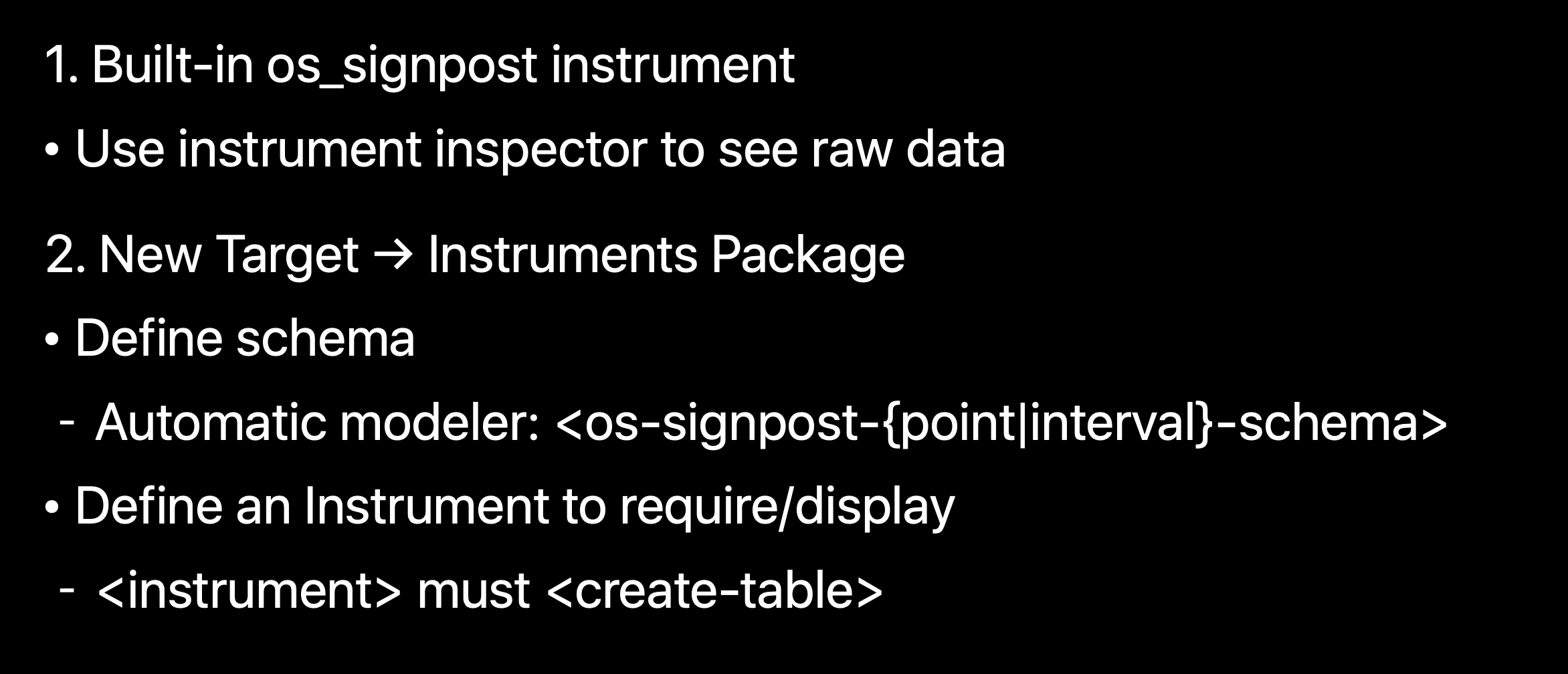 - 그렇기 떄문에, OSSignpost 추적 상태가 양호한지, 데이터를 사용자 스킴으로 정의하는 과정을 확인하는 것은 매우 중요!