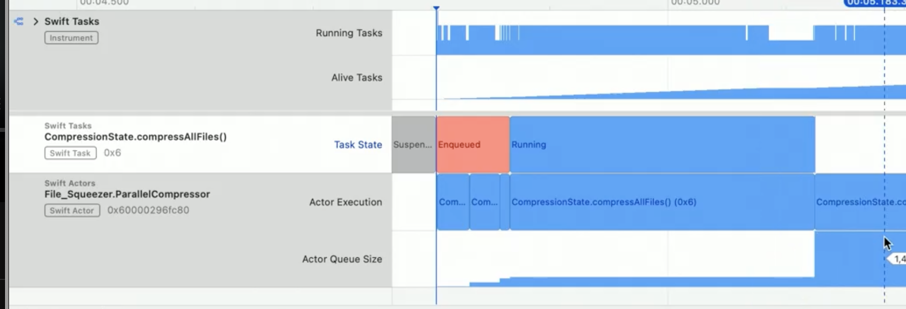 Task는 필요한 기간동안만 Actor에 남아 있어야하지만, ParallelCompressor Actor에 오래 접근하는 Task가 확인된다.