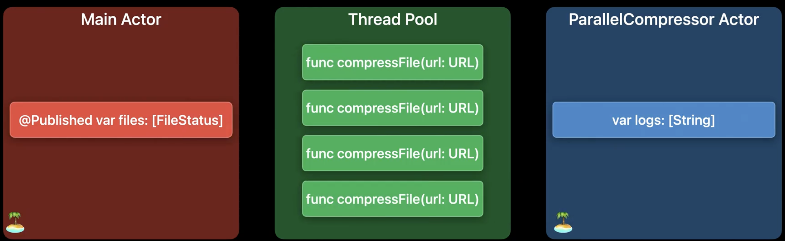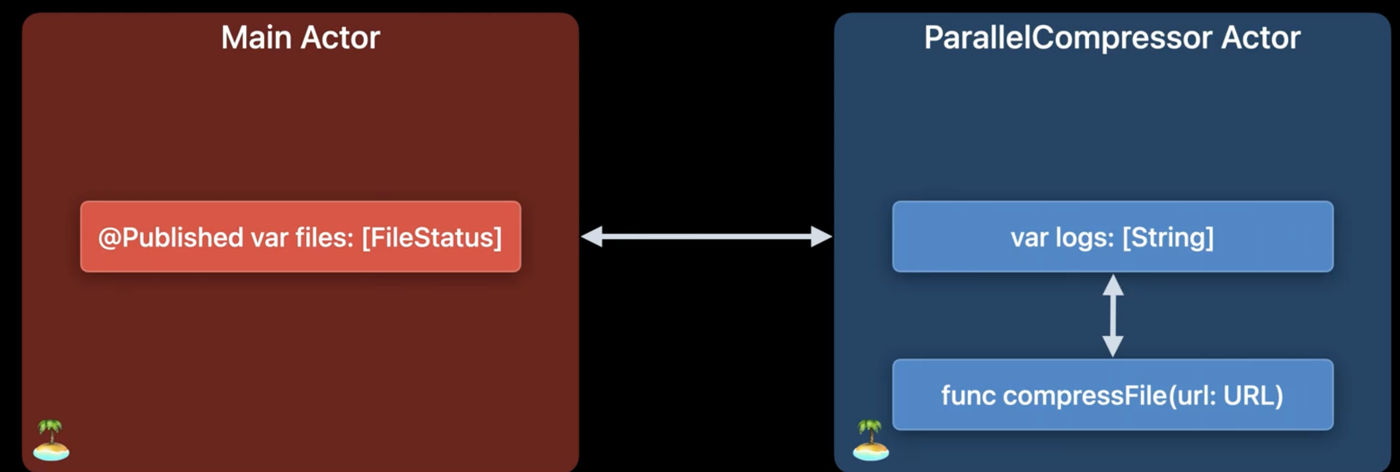 UI 업데이트가 되야할 때는 MainActor로, 로깅 작업을 할 때는 ParallelCompressor Actor로 격리 시킨다.