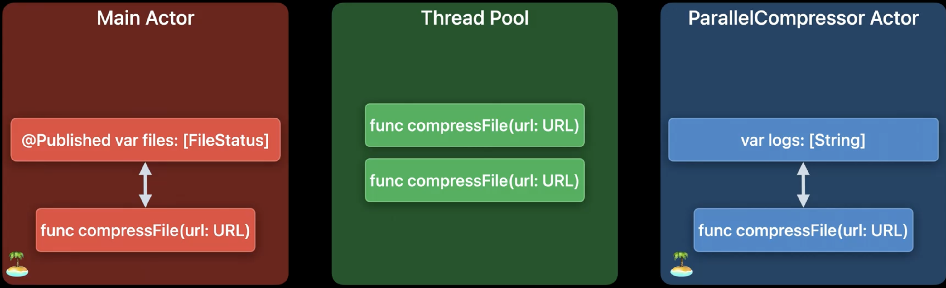 compressAllFile은 ParallelCompressor Actor의 일부이므로, 함수 전체는 Actor에서 이루어지며, 다른 모든 작업은