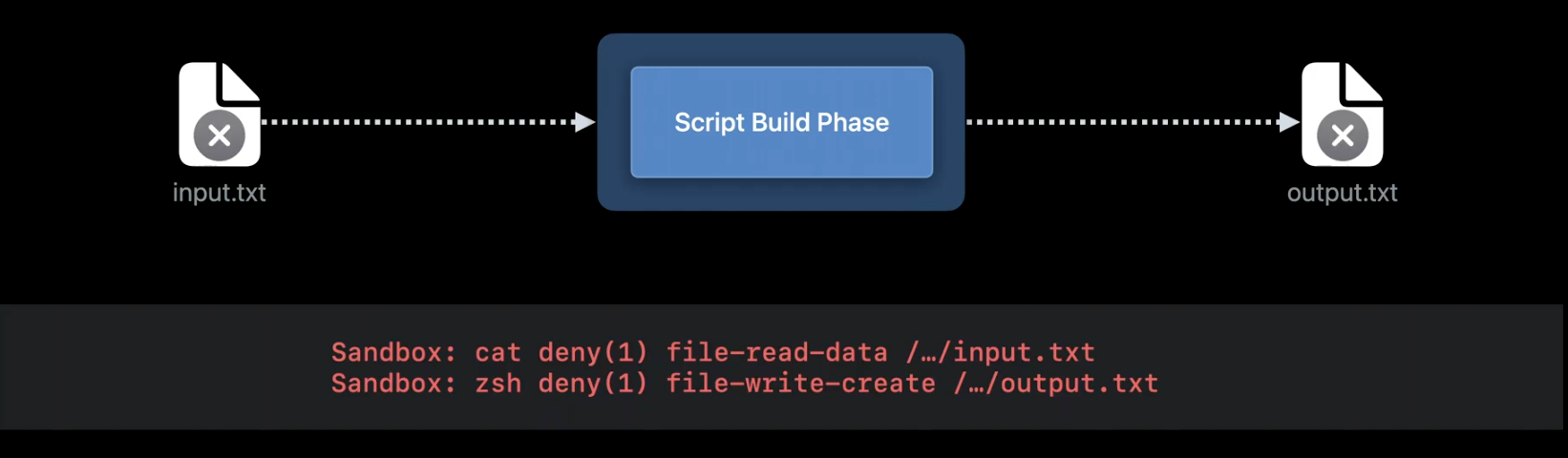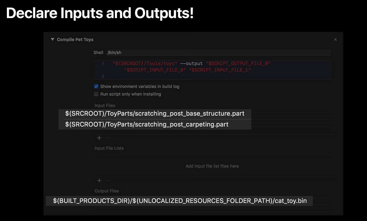 - 하지만 스크립트 Phase를 병렬로 실행할 경우, 빌드 시스템은 입출력 목록에 의존하게된다.
