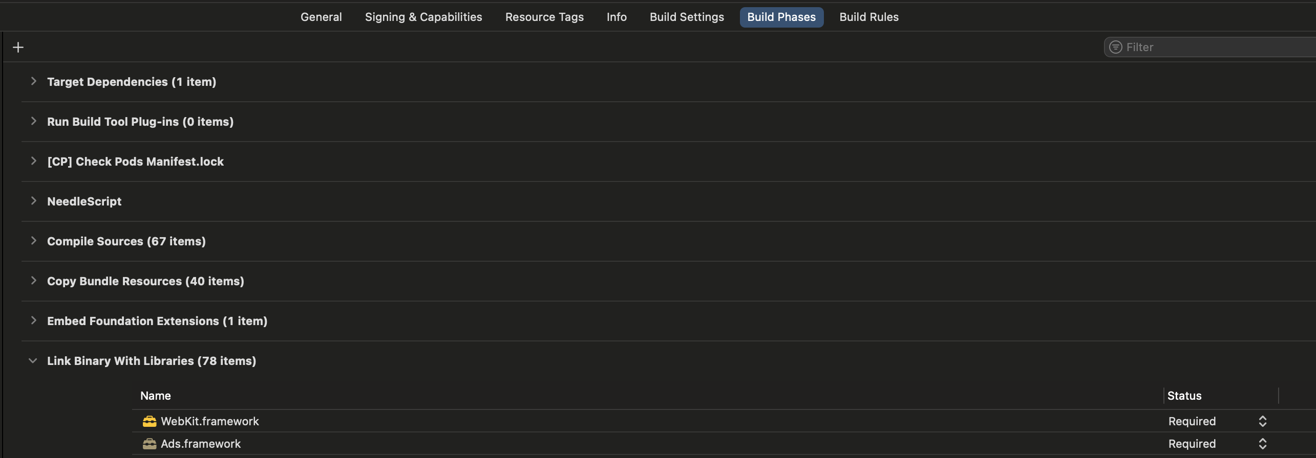 Link Binary With Libraries에 필요한 Target을 명시