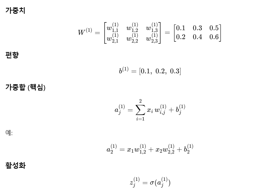 해석하면, 1층에서 2층으로 갈 때 사용되는 가중치이며, 이전 2번째 뉴런에서, 다음 1층 뉴런에 대해 사용됨