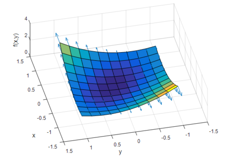 f(x,y)를 편미분 후, 기울기 벡터까지 구해봤다.