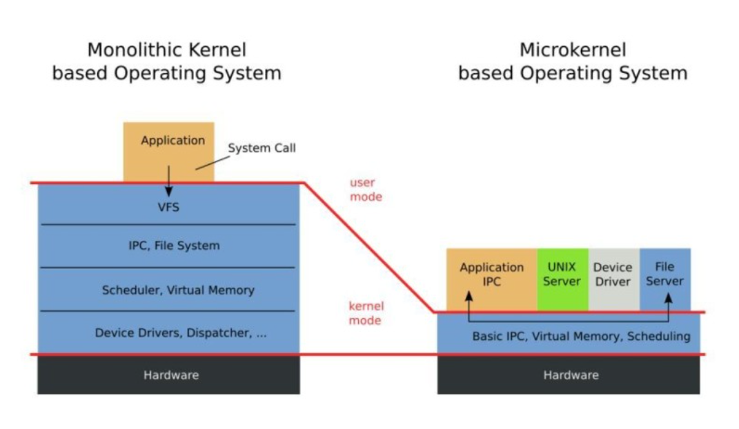 놀리식 커널이 가지고 있던 시스템 서비들(VFS, IPC, Device Driver 등)을 마이크로 커널에서는