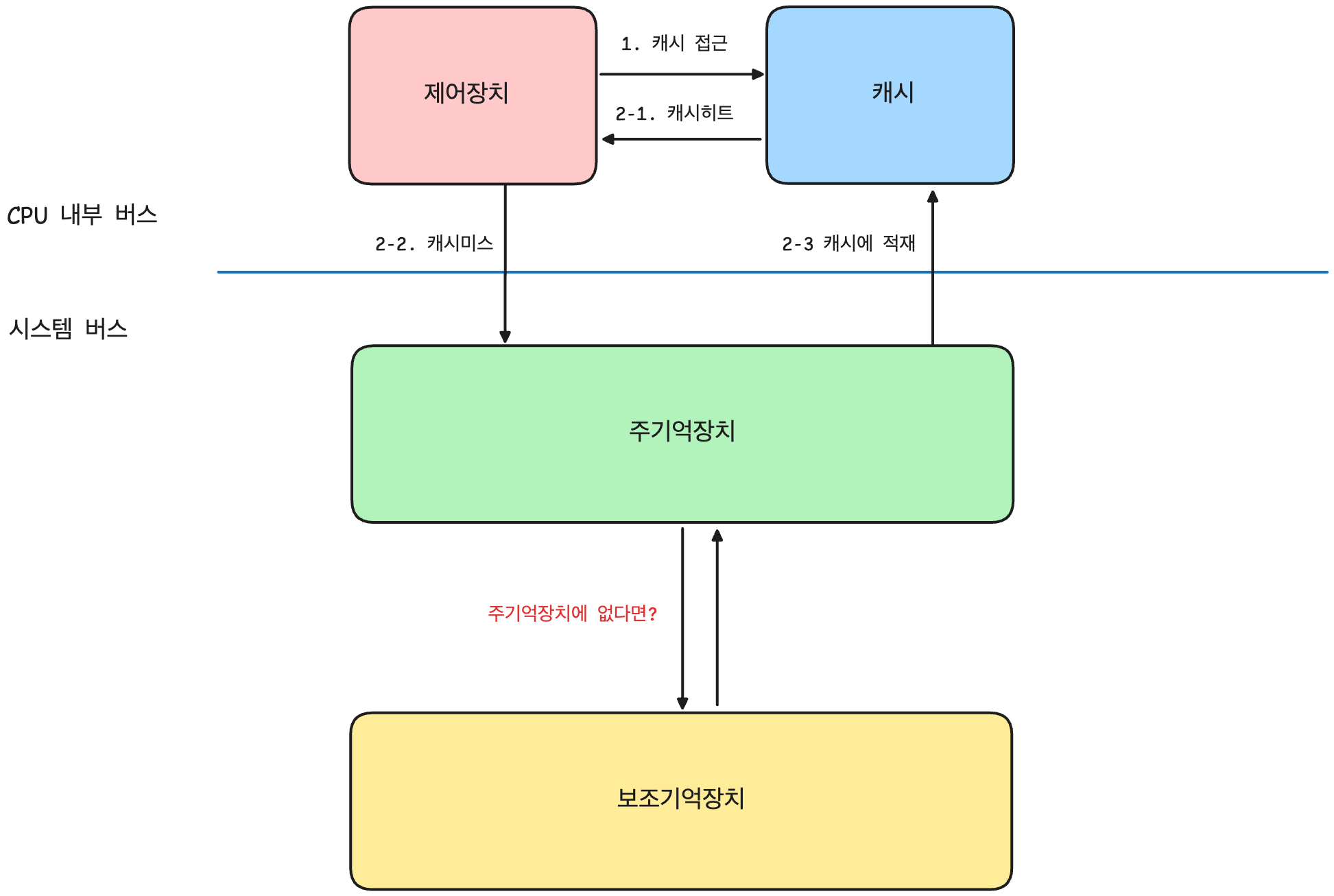 - 캐시에 데이터가 없어 주기억장치에서 데이터를 가져올 때