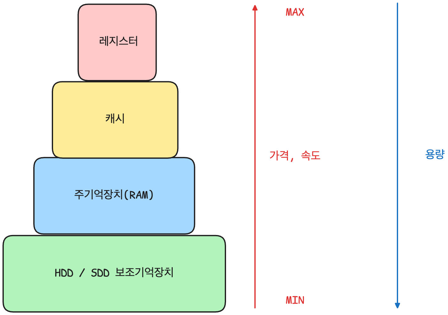 - CPU 안에 있는 작은 메모리, 휘발성, 가장 빠른속도, 가장 적은 용량