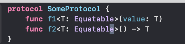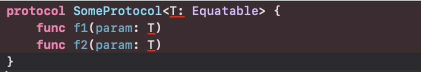 associatedtype T : Equatable // 제약 조건 도 줄 수 있음