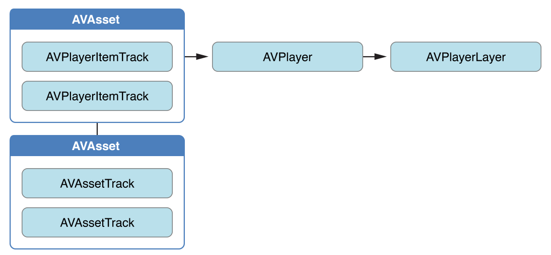 - AVPlayer 객체가 AVPlayerItem을 이용, AVPlayerItem이 AVAsset을 사용하는 구조다.