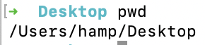 현재 위치가 Desktop일 때 여기서 pwd 명령어를 사용하면 다음과 같이 나온다.