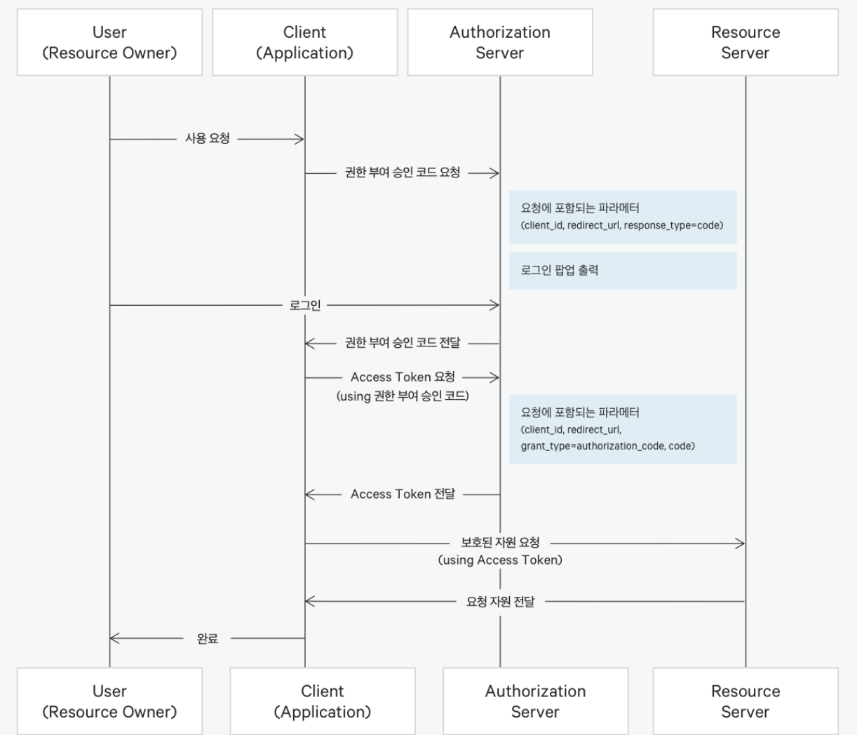 이 때 redirect URL에 Authorization Code(인증 코드)를 실어 본낸다.