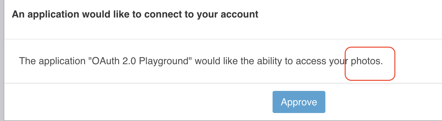 - scope : 클라이언트가 부여받은 리소스 접근 권한 , 범위 등을 나타낸다. 아래 사진에서 photos에 해당된다.