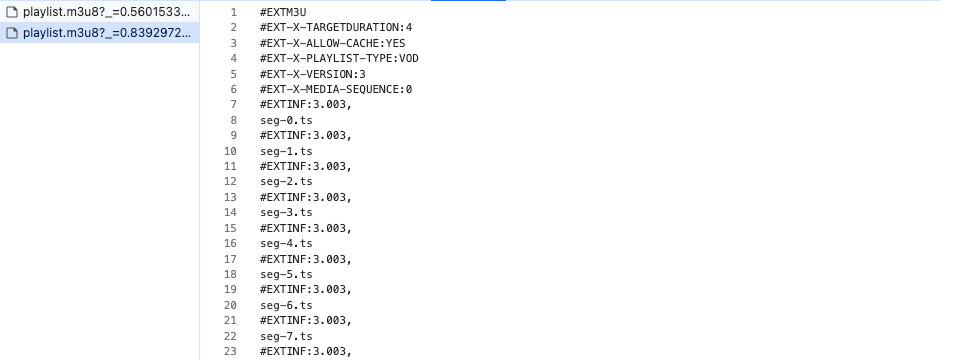 - PART-HOLD-BACK=3.003000: Low Latency HLS 설정으로 서버가 클라이언트 재생 지연을 최소화하려 함