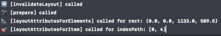 print("📐 [layoutAttributesForElements] called for rect: \(rect)")