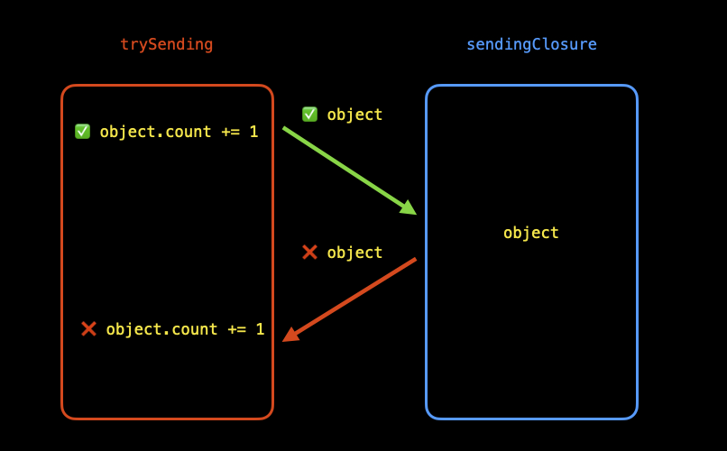 - 클로저에 Sendable이 붙어 있을경우, 클로저가 캡쳐한 값은 모두 Sendable 해야한다.