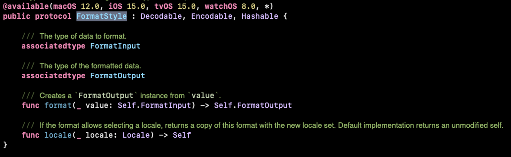 - FormatStyle이란 프로토콜을 참조하고 있고