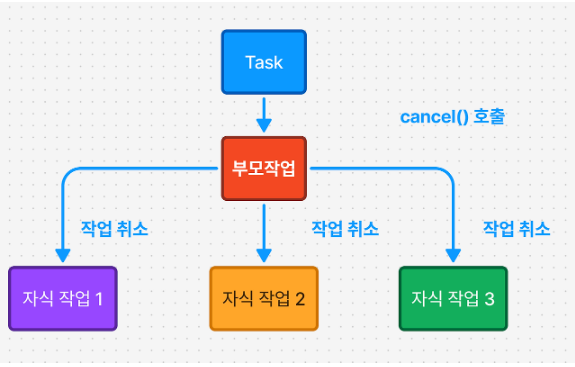 - Task는 부모 Task 또는 현재 Task에 대한 참조를 가진 어떤 context에서도 Task를 비동기적으로 취소할 수 있다.