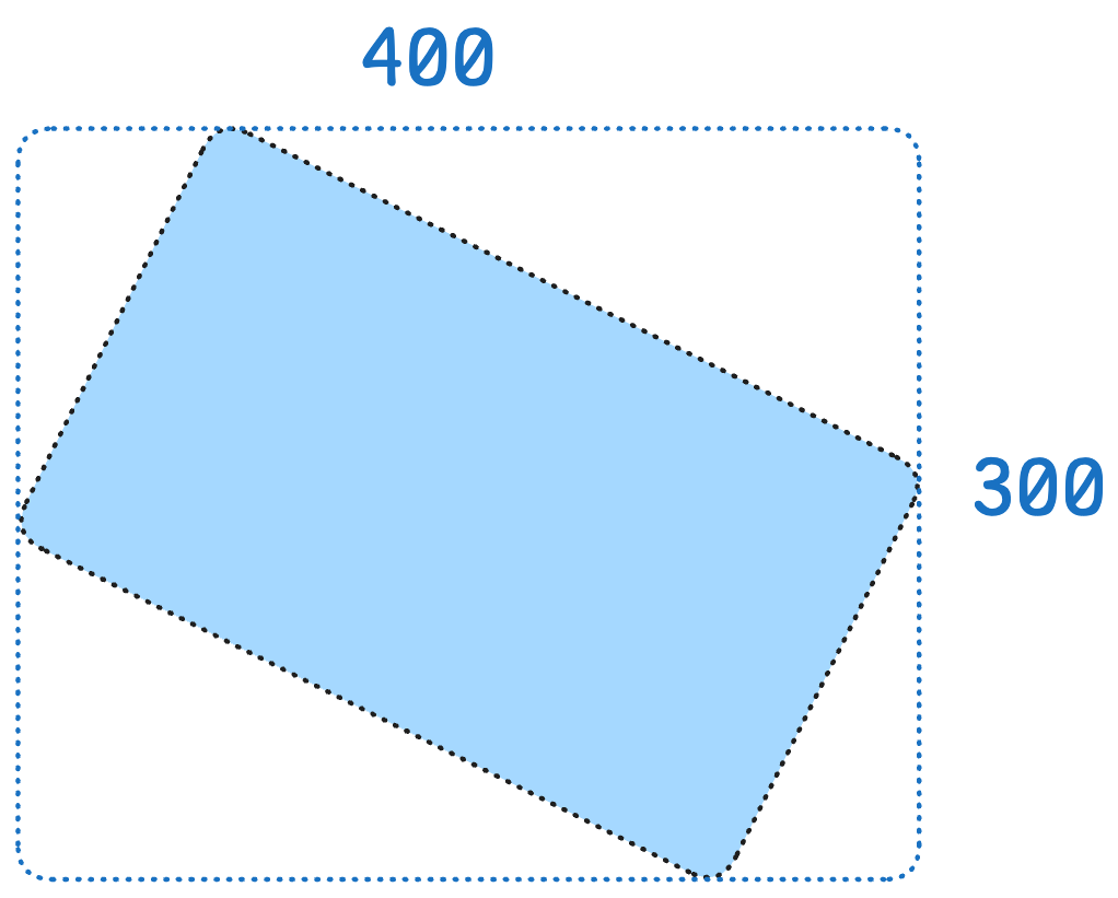 여기서 회전을 시키지 않았을 때는 View의 영역을 감싸는 사각형과 View의 크기가 일치하여