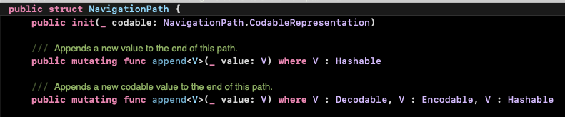 네비게이션 Stack의 생성자를 보면 NavigationPath가 있다.