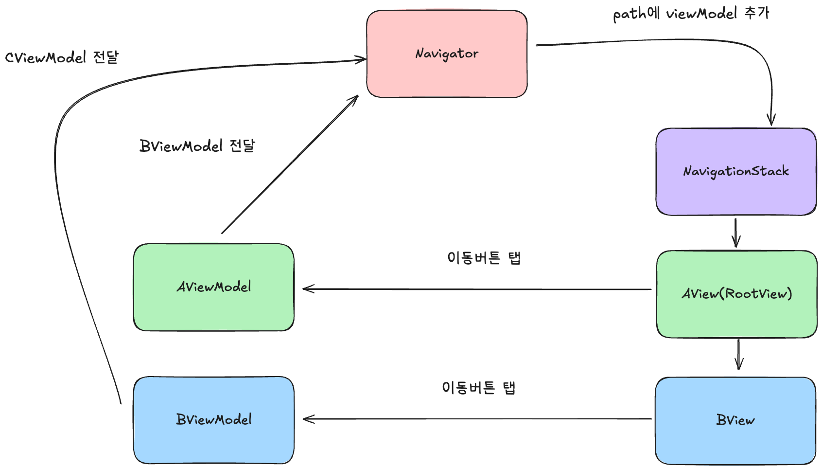 1️⃣ 네비게이션은 뷰모델을 넘김으로써, 시작된다.