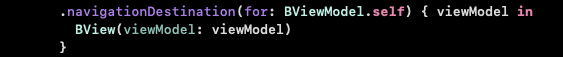 .navigationDestination(for: BViewModel.self) { viewModel in