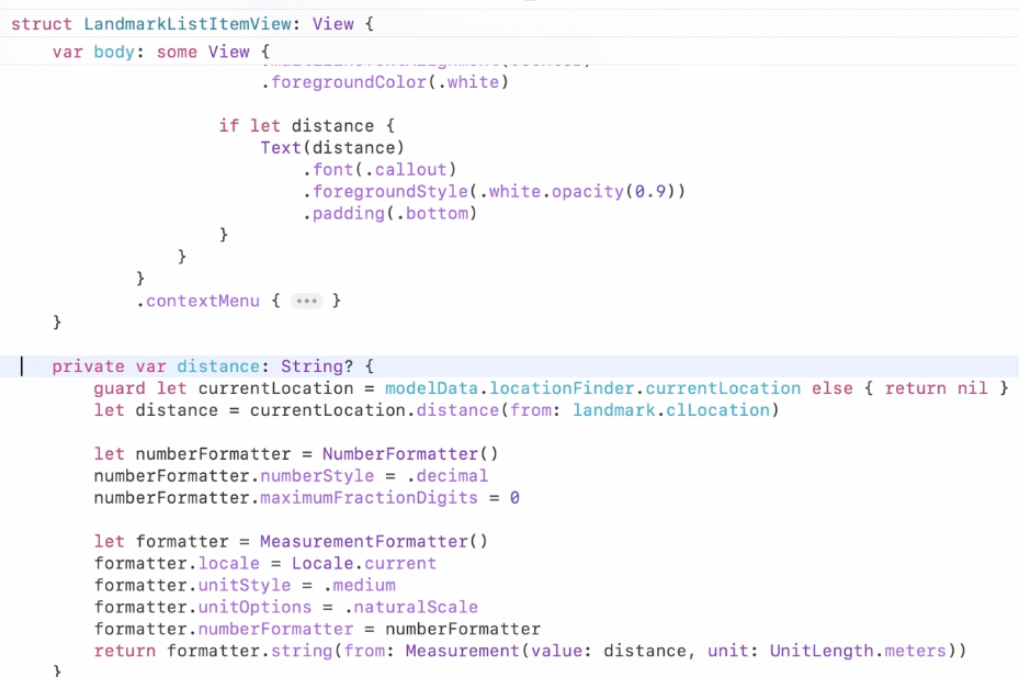 - view body text에 distance라는 computed property를 사용하는데