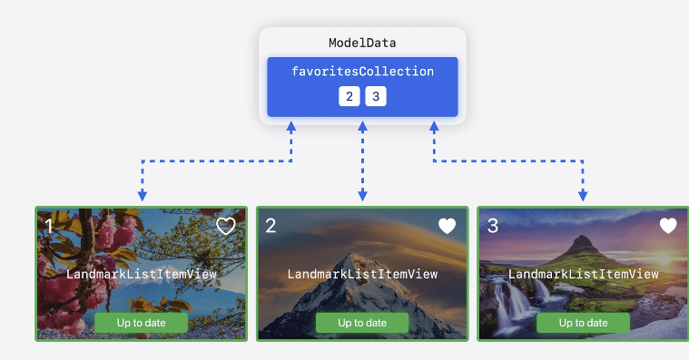 - 이 때, 즐겨찾기 배열에 변환이 생기면, 종속성이 생긴 모든 항목의 뷰는 Outdated와 Updated를 진행