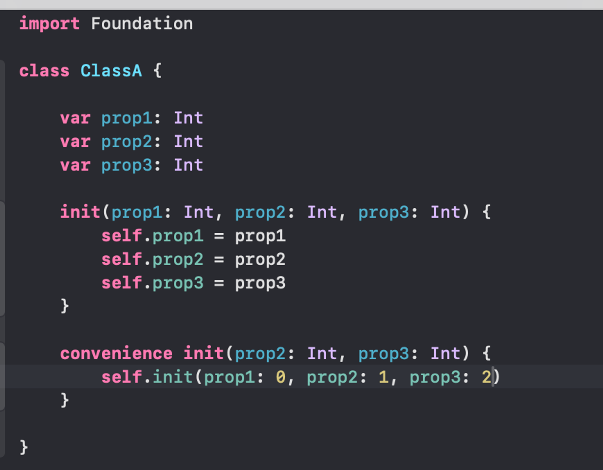 - Convenience Initializer는 반드시 동일한 계층(클래스)의 initailizer를 호출해야 한다.