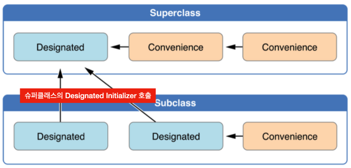 서브 클래스의 Designated Initializer는 반드시 슈퍼 클래스의 Designated Initializer를 호출해야 합니다
